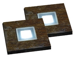 Made from attractive natural slate. Powered by an integral solar panel. Energy-saving white LED lighting. Provides up to 8 hours of light per night. Replaceable, rechargeable Ni-MH battery pack. No wiring, no operating costs - simply install and enjoy. Each step stone measures 7.9" x 7.9"