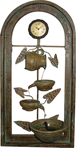 Wall Fountain with Antiqued Clock