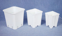 These new European pots are a great addition to the Botanicare™ line. Three sizes are available: 6” x 6” (3.4 liter), 7” x 7” (6 liter) and 8.5” x 8.5” (10 liter). The pots are white and are of excellent quality.