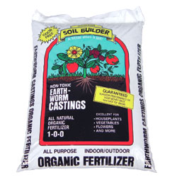 WIGGLE WORM SOIL BUILDER EARTH WORM CASTINGS (1-0-0): Nature's most incredible fertilizer! Earthworm castings have been nature's most abundant and effective fertilizer for millions of years. This rich, odorless, all natural product is very cost effective because you only use a little to get big, money-back guaranteed results! Excellent for vegetables, houseplants, flowers, lawns and more!